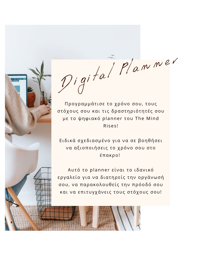 Δημιούργησα το The Mind Rises σε μια προσπάθεια να συνδυάσω την αγάπη μου για την Ψυχική Υγεία & την Ψυχιατρική με τη δημιουργικότητα! Εδώ, υπάρχει χώρος για όλους όσους θέλουν να ακολουθήσουν το μονοπάτι προς την αυτοαγάπη, την ψυχική ηρεμία και την αυτεπίγνωση. Όλοι είναι καλοδεχούμενοι! Εάν θέλεις να ξεκινήσουμε μαζί να βαδίζουμε σε αυτό το μονοπάτι προσφέρω τόσο ατομικές, όσο και ομαδικές θεραπευτικές συνεδρίες! Μπορείς παράλληλα να εξερευνήσεις το themindrises.gr για να βρεις τα διάφορα διαμαντάκια που έχω κρυμμένα στις σελίδες του – ελπίζοντας ότι θα σε βοηθήσουν να φτάσεις εκεί που έχεις βάλει στόχο!
